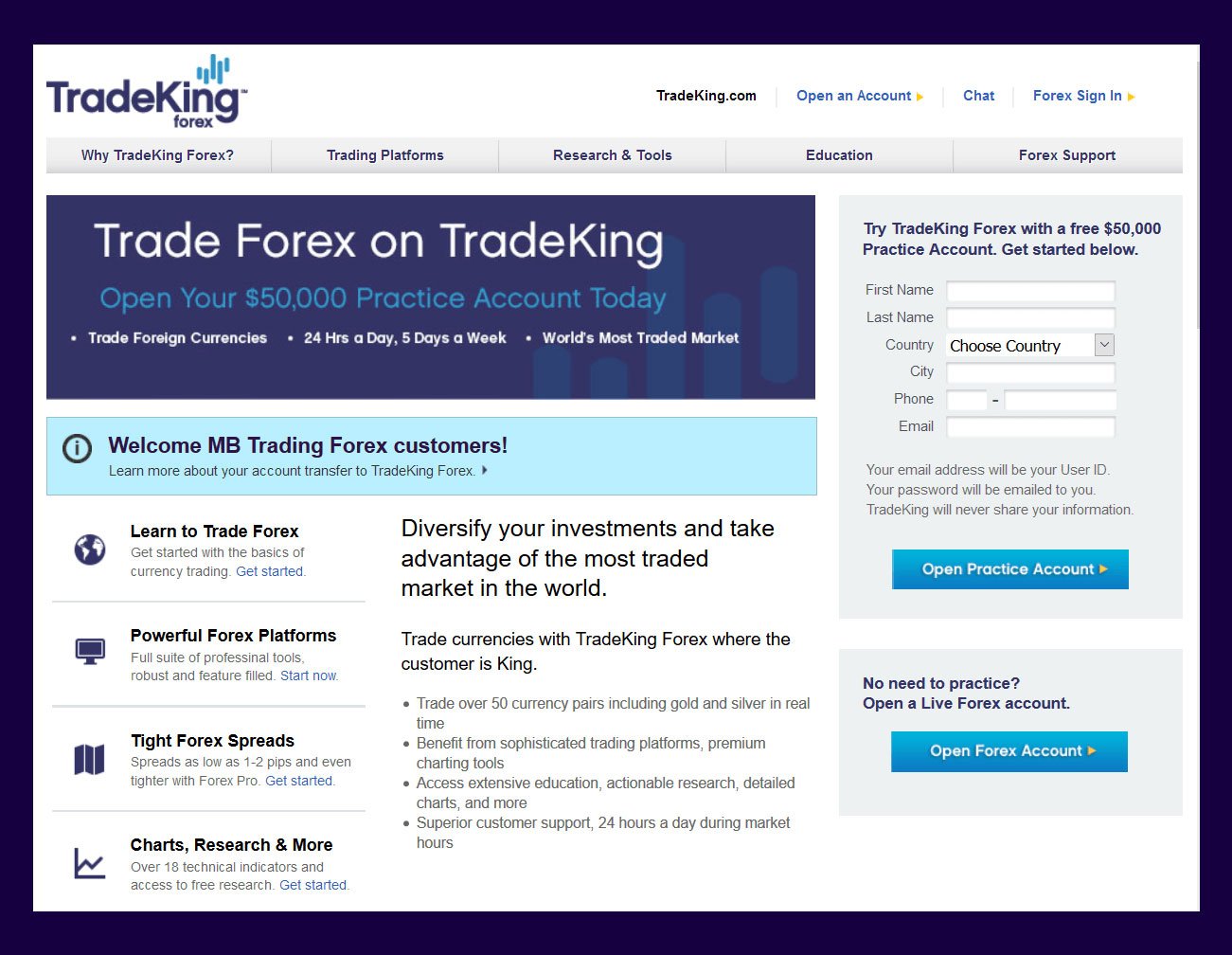 Start a $50,000 practice account and begin to learn how to trade Forex using TradeKing